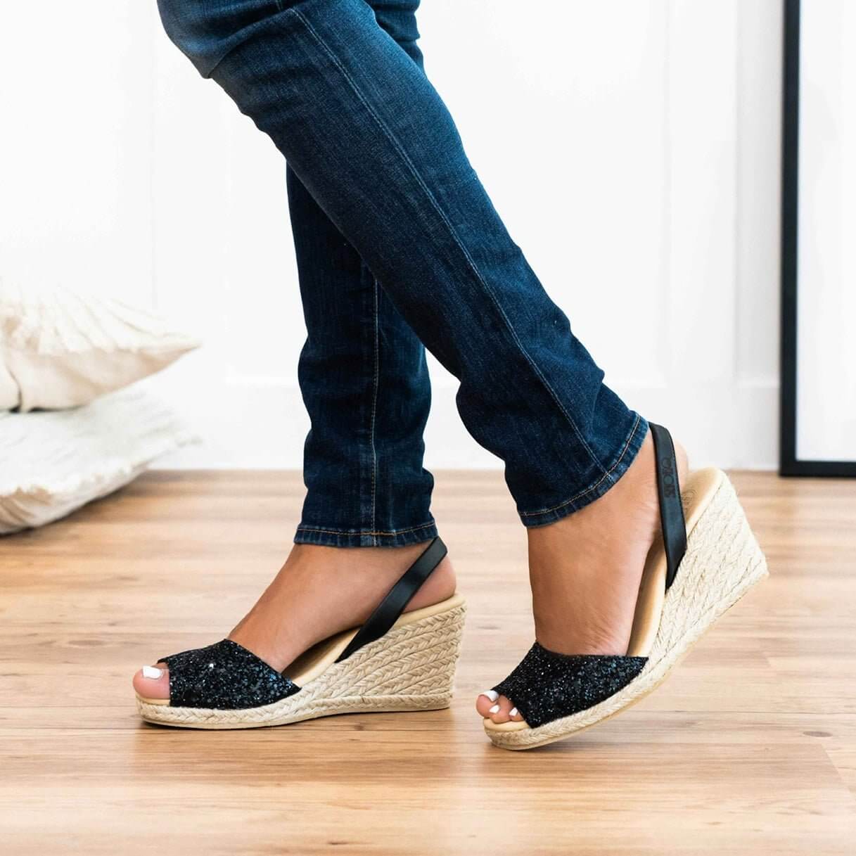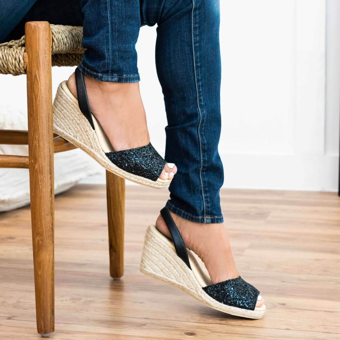 Talon compensé classique (1re génération) en paillettes minuit