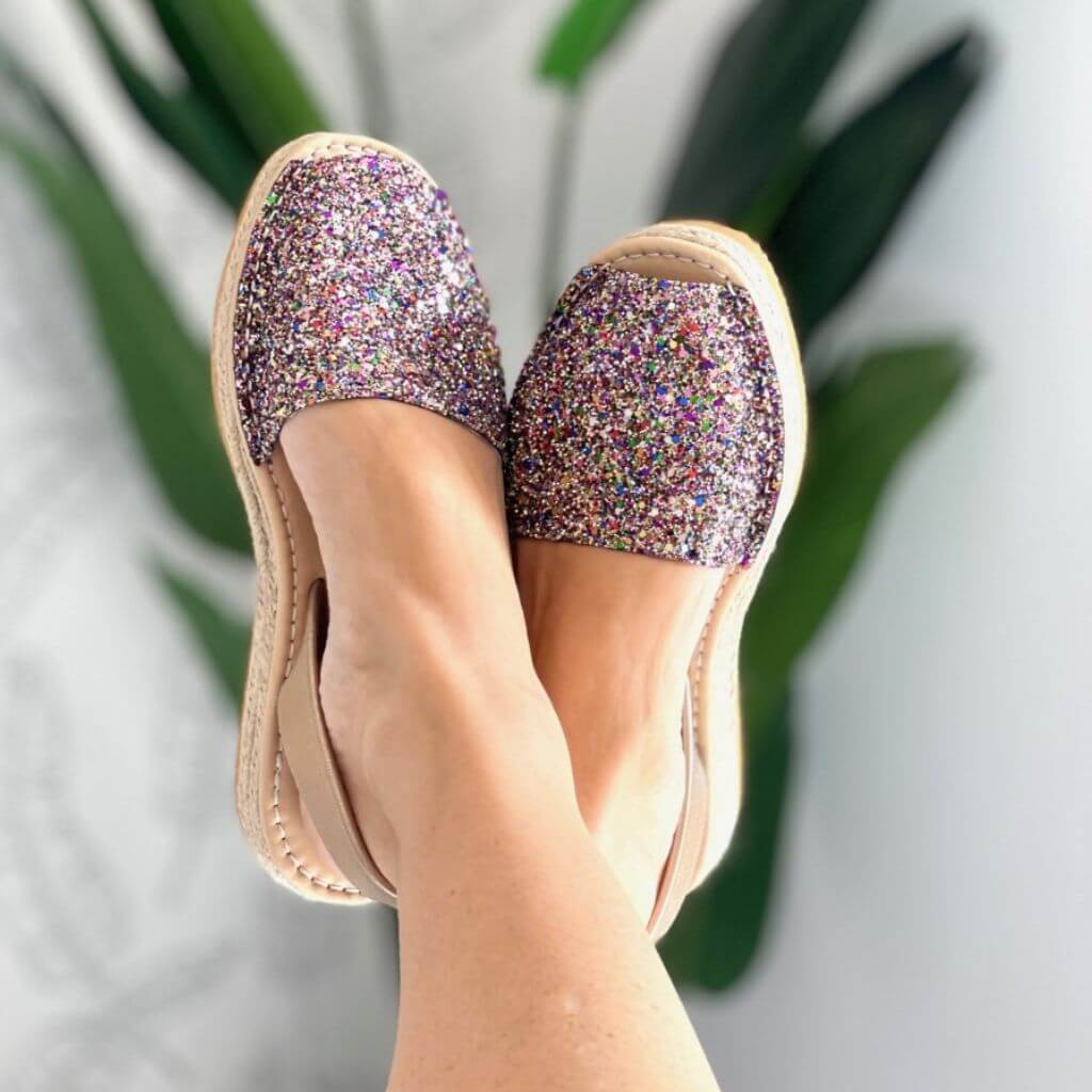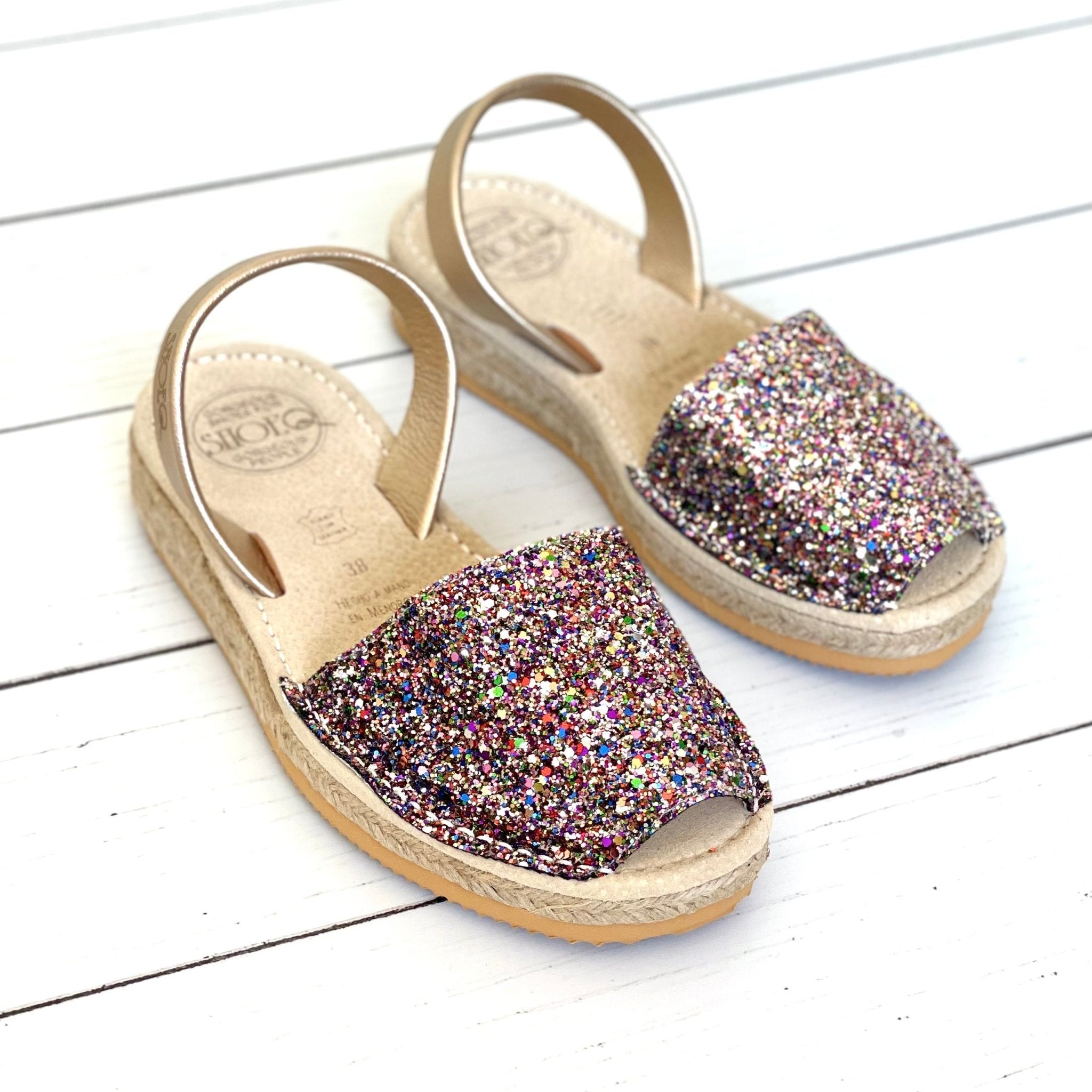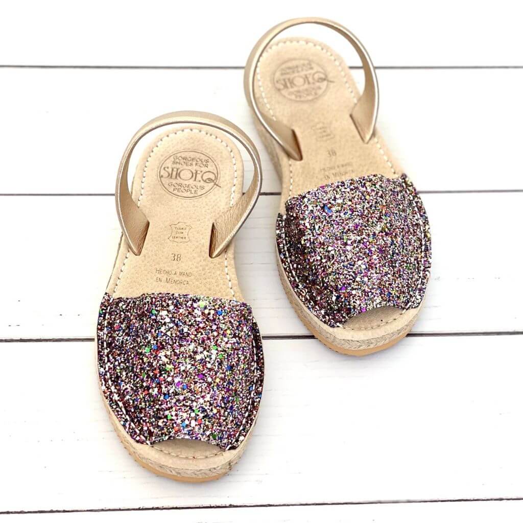 Micro espadrille compensée à paillettes dorées arc-en-ciel