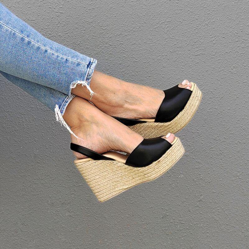 • Espadrille à talon de 11 cm en corde de jute filée à la main