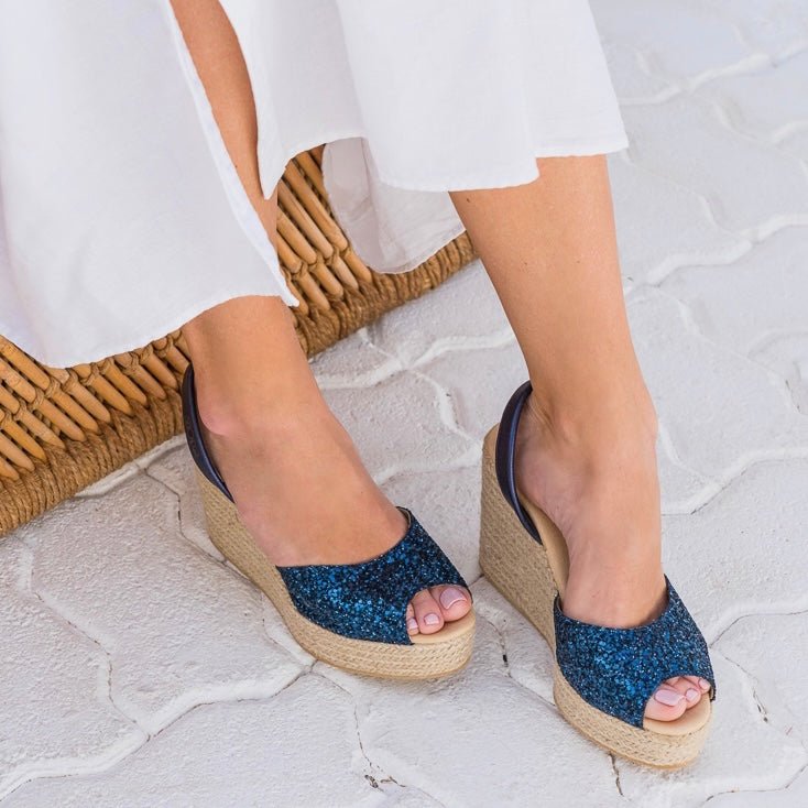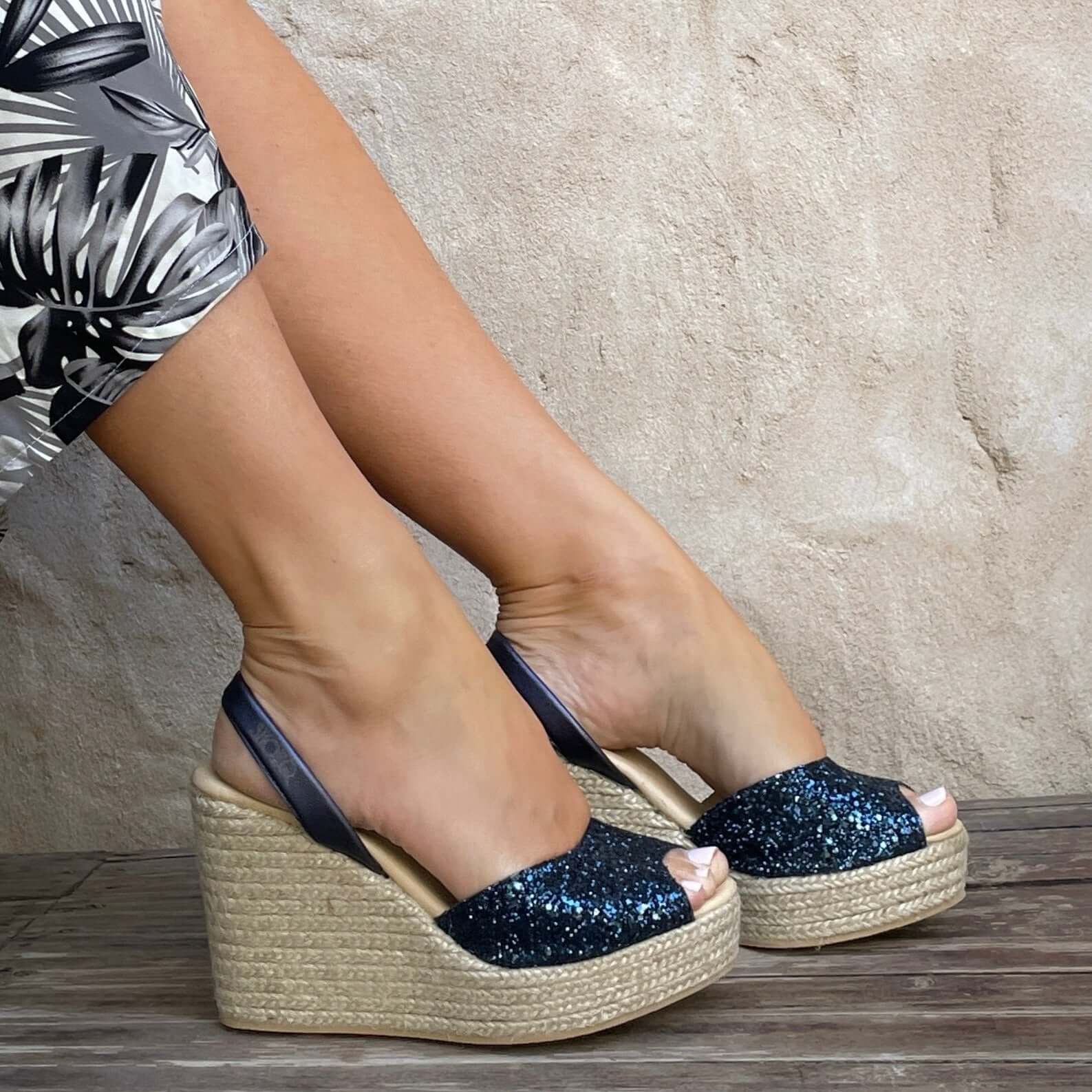 Roxy Wedge (1ère génération) en bleu marine pailleté